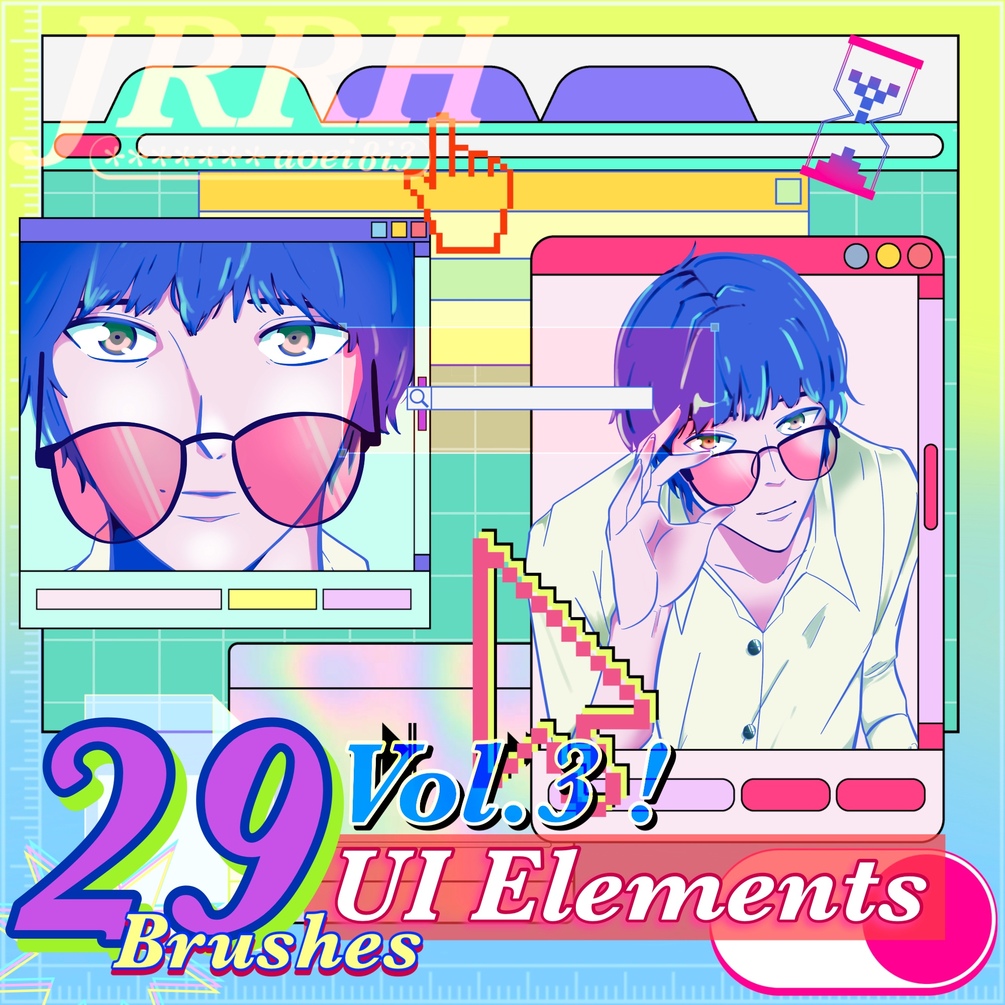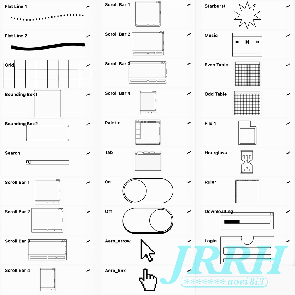 Procreate stamp brushes in ‘User interface’ theme. Hi-resolution even change brush size.